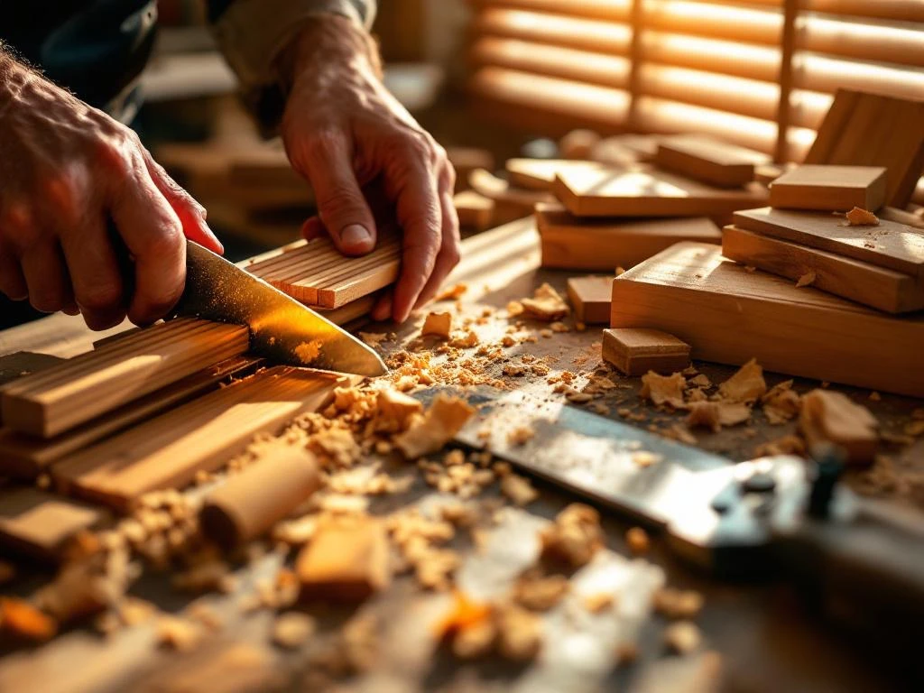 Het maken van houten lamellen begint met het precisie-zagen van het hout tot strips van meestal 25mm, 35mm of 50mm breed. Daarna volgt een intensief schuur- en vormgevingsproces.