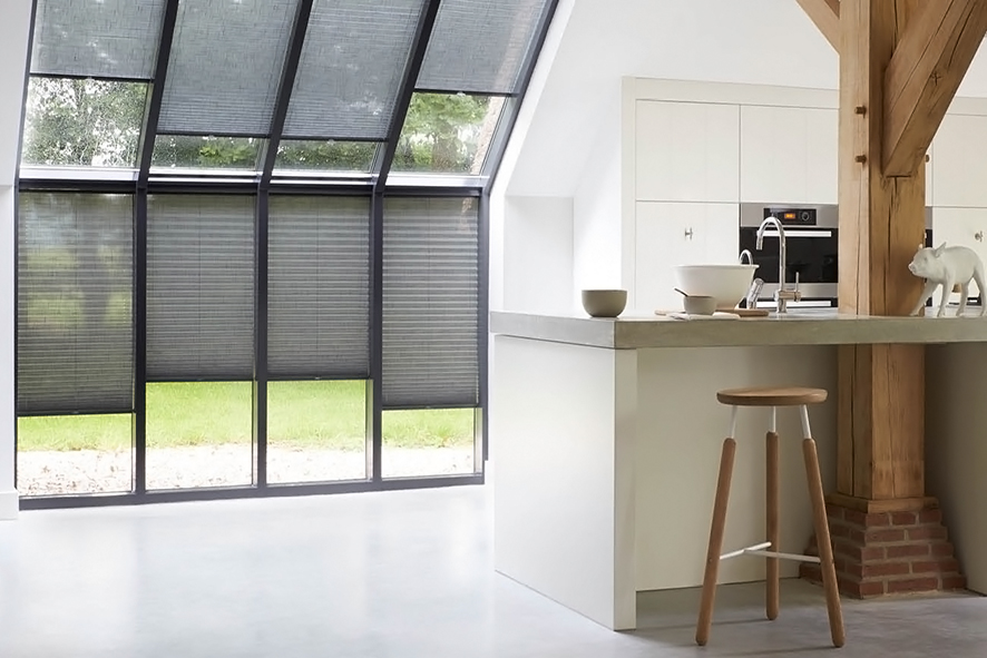 Bij dakramen en schuin geplaatste ramen zijn duettes ook een slimme keuze. Ze blijven goed op hun plaats door hun constructie en bieden extra isolatie waar traditionele gordijnen vaak tekortschieten.