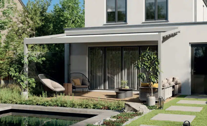 SL -1190 Pergola zonwering met zip-geleiding. Lage muurbelasting en zeer windvast
